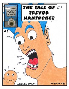 TITLE: The Tale of Trevor Nantucket #1 FORMAT: 5" x 6.5" PAGES: 24 DETAILS: Color covers, B/W interior, staple bound, first printing, limited to 50 hand-numbered copies. PRICE: $8 shipped via USPS (mainland USA only, for international, please request a new total) YEAR: 1993/2021 DESCRIPTION: The Tale of Trevor Nantucket is a deranged story about a scientist who accidentally enlarges his penis to an unwieldy size, causing chaos and death to everyone around him. Issue #1 was originally published in 1993, and was rebooted and re-released in 2021, with issue #2 soon to follow. Written & illustrated by Barney Hardwood, and published by Unflushed Humor, The Tale of Trevor Nantucket is an adults only comic that makes you feel like you are on Mr. Toad's Wild Ride, except you're sitting on the toilet with a bad case of diarrhea and a 12 year old's sense of humor. Again, ADULTS ONLY! |