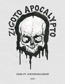 TITLE: Zigoto Apocalypto #3 FORMAT: 8.5" x 11" PAGES: 44 DETAILS: B&W, professionally printed, staple bound, first printing, 50 copies, hand-numbered. PRICE: $15 shipped via USPS (mainland USA only, for international, please request a new total) YEAR: 2021 DESCRIPTION: 2021 was a long year and my motivation was running on fumes the whole time, but finally, "Monochromalignant" was completed. I've changed things up a little here as this issue is completely black and white, focusing on art produced during the deepest and darkest phase of the pandemic. Issue 3 is filled with despair so try not to kill yourself after reading it. Guest artists include Mutartis Boswell, Livor Mortis Zine, NXONEED, James Arthur Storrs and CeeDubComicWorks. |